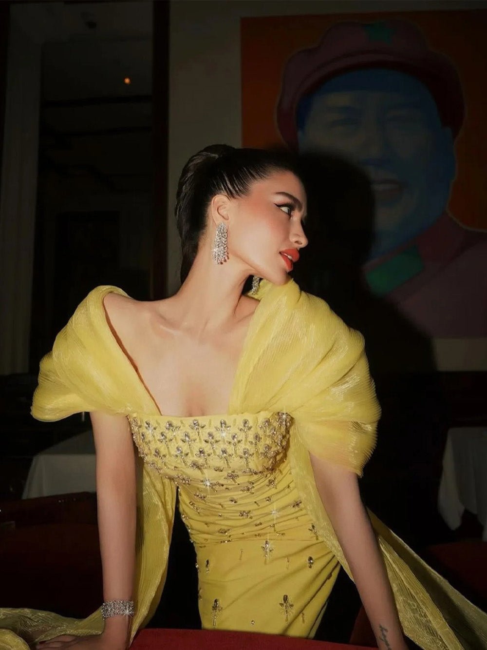 ELENA BEADED CAPE EVENING GOWN